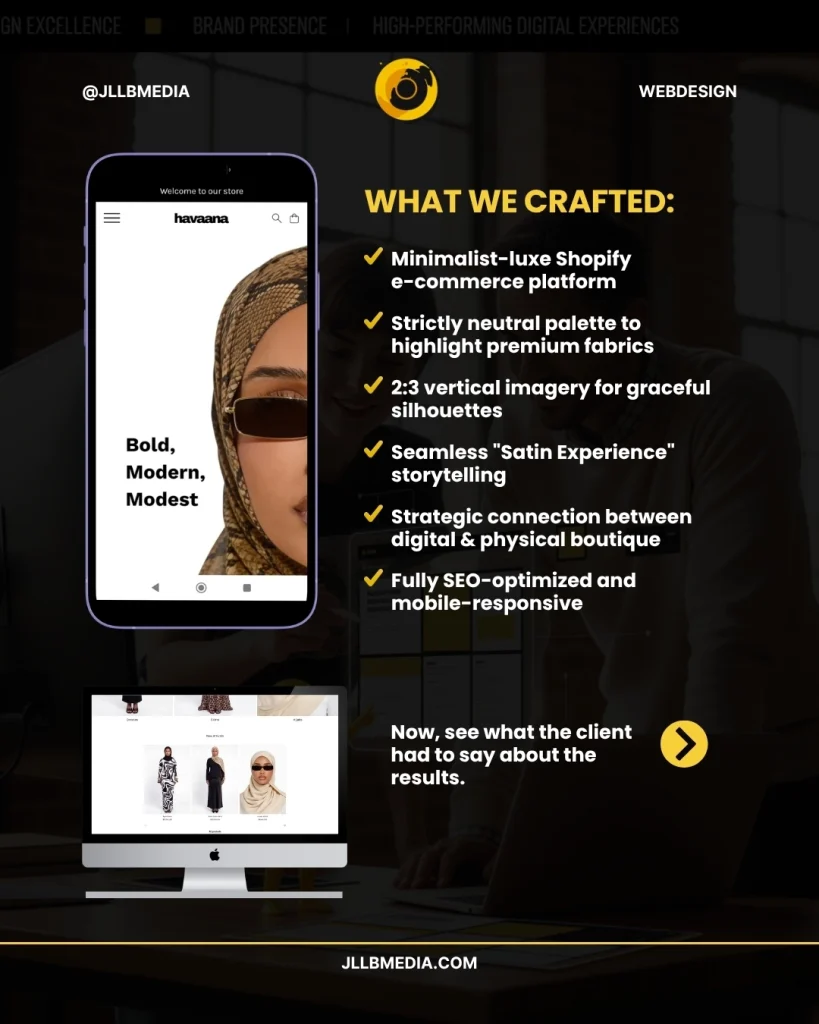 Using a strictly neutral black-and-white palette, we ensured that HAVAANA’s vibrant satin fabrics remained the focal point. We implemented a 2:3 vertical imagery ratio and full-width sliders to showcase the fluid movement of the garments. The result is a sophisticated, SEO-optimized e-commerce platform that combines intuitive navigation with robust SSL security for a flawless and safe "Satin Experience."