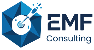 The site is completed with a simple and functional Contact page and a footer that consolidates important links and company information. Overall, the EMF Consulting website is an example of how a platform like Wix can be used to build a digital presence that effectively communicates the technical expertise, professional credibility, and strategic value of a niche consulting service.
