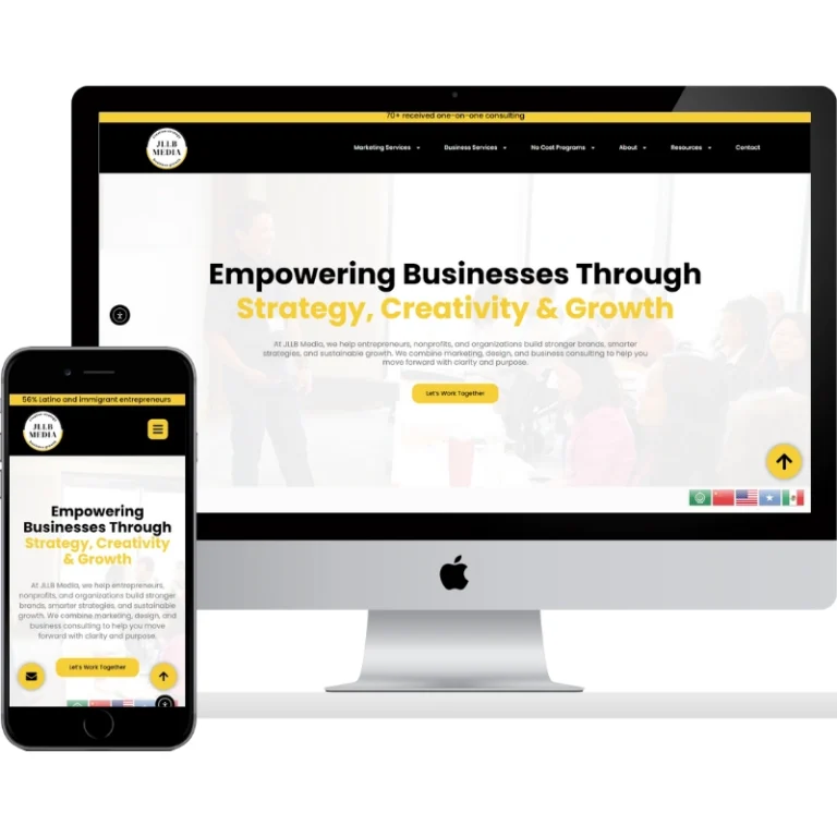 For JLLB Media Marketing Agency, we designed a mobile-first, responsive website that showcases our products and services while effectively capturing leads and communicating client experiences. Utilizing WordPress and Elementor, we created a bilingual (English and Spanish) website to cater to a broader audience.